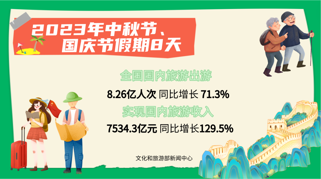 ※2023年中秋节、国庆节假期国内旅游出游8.26亿人次,国内旅游收入7534.3亿元