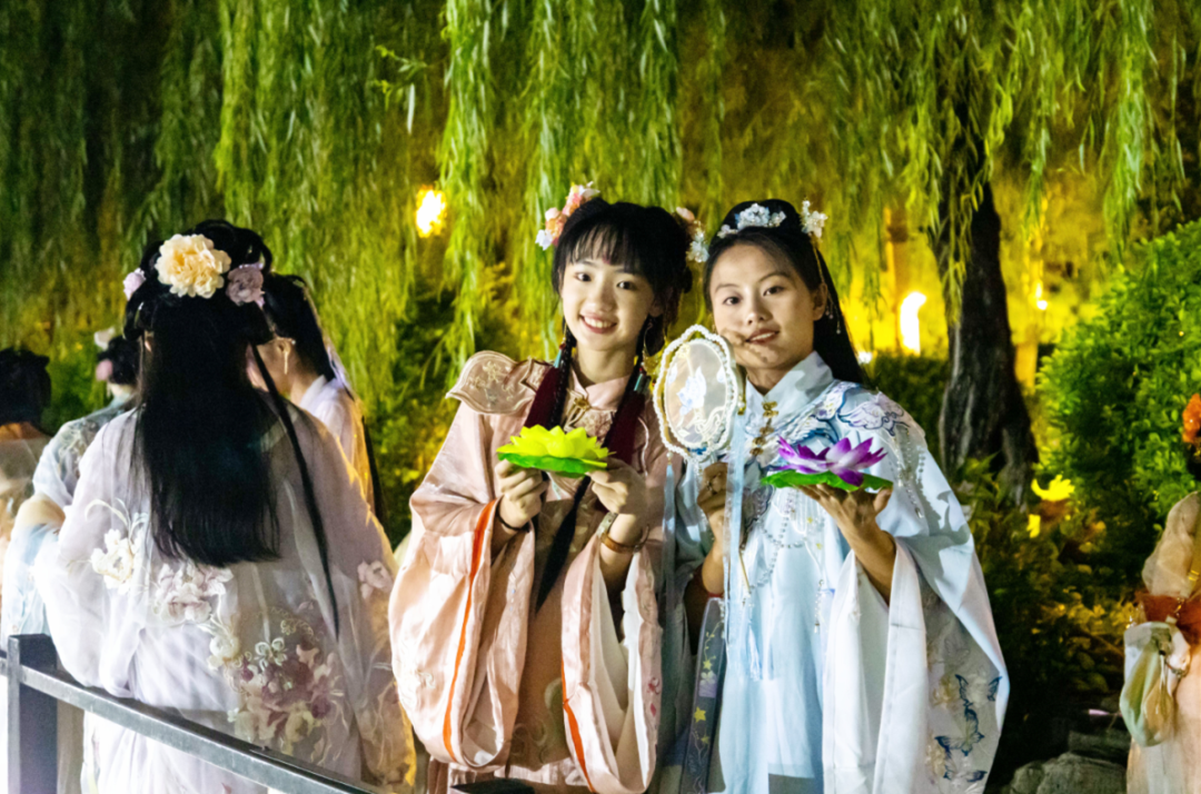 (彝人古镇举行“月满中秋话团圆寻月游园会”和“花好月圆·民俗共赏”活动。)