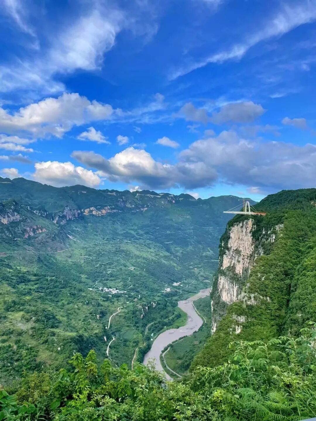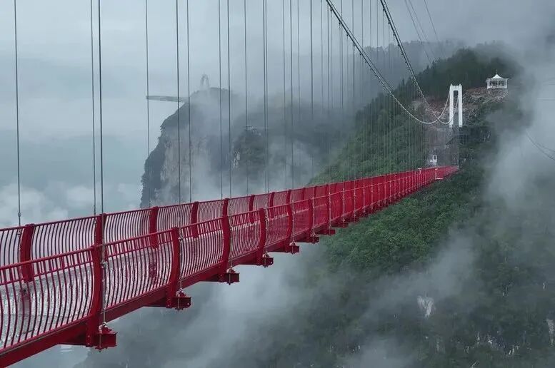 尼珠河大峡谷之上,建有世界最高的悬索玻璃吊桥,360米的高差不禁让人脚下打颤,当地人称它为“云端玻璃吊桥”,这里也因此成为众多户外爱好者挑战的胜地。