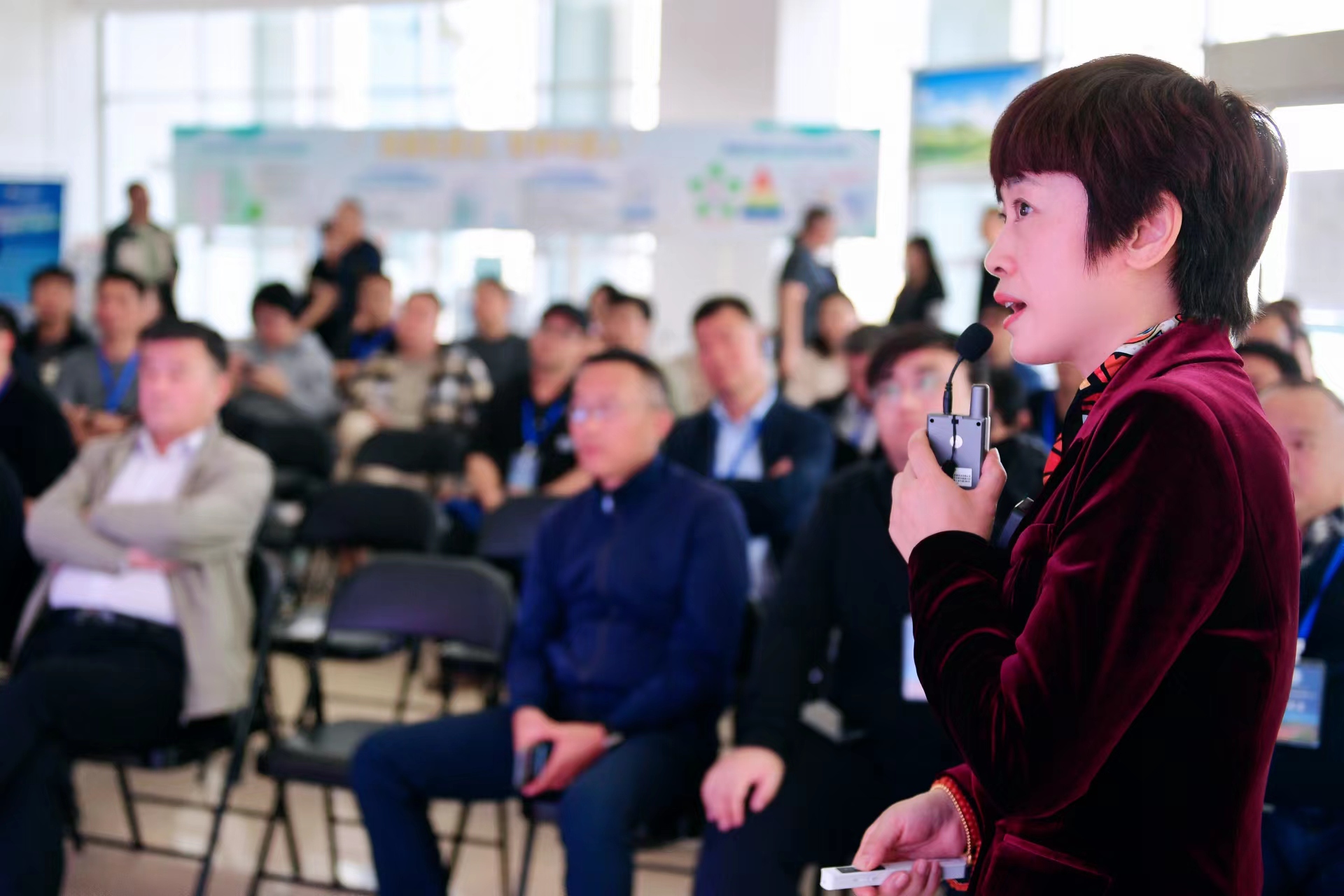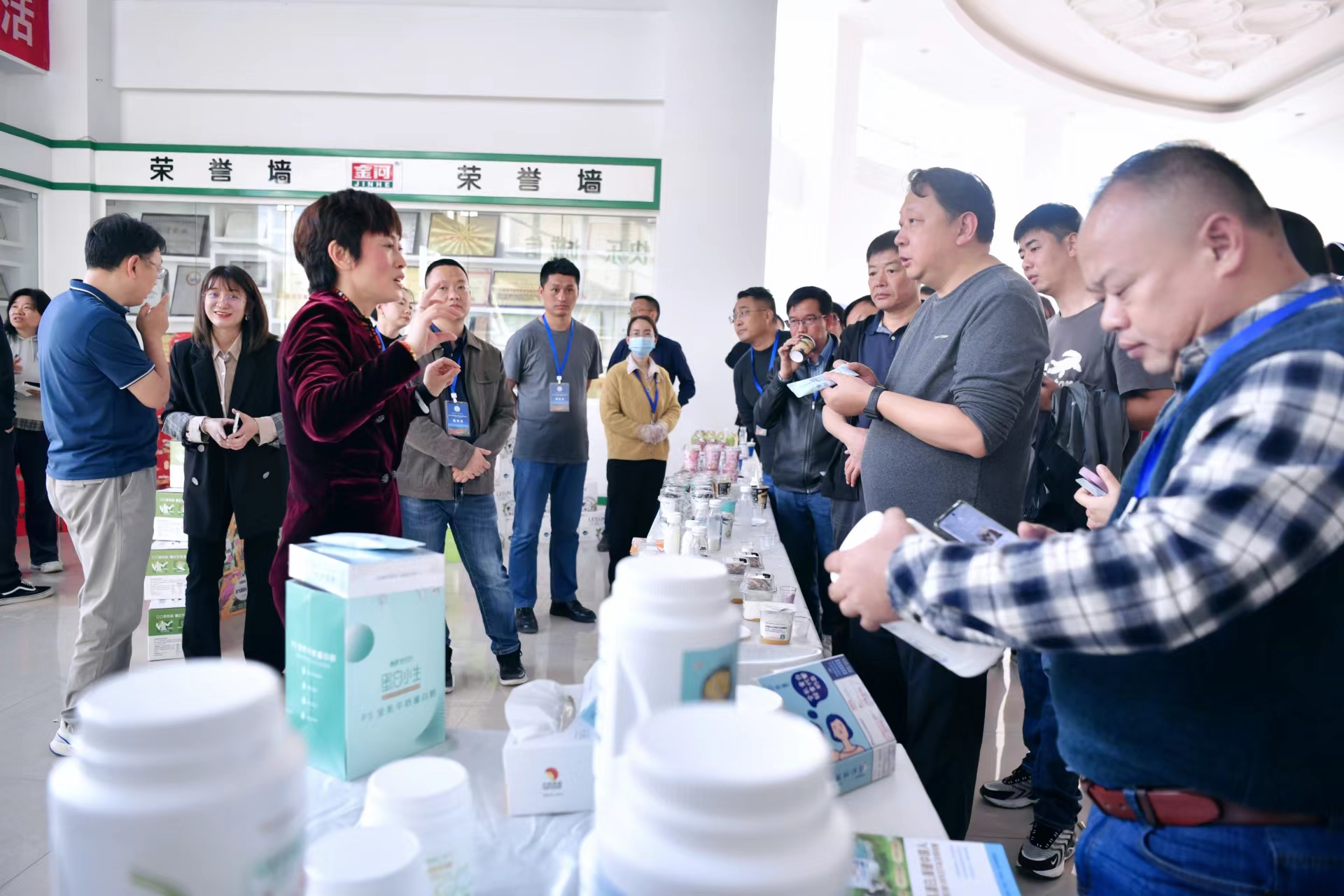 (宁夏塞尚乳业有限公司副总裁王诗丽现场介绍塞尚乳业产品。)