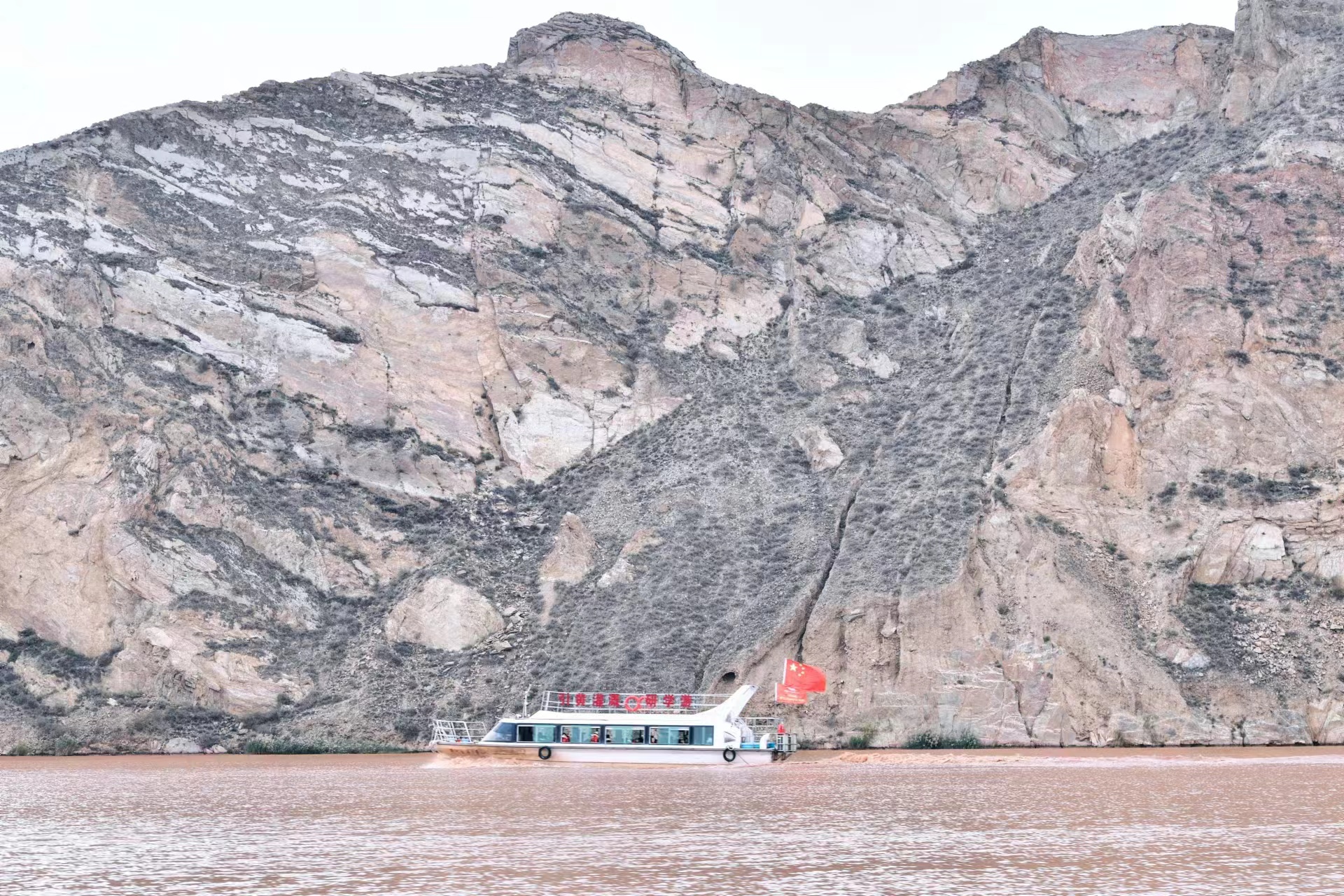 游船逆水而上,美景迎面而来,导游不时指着青铜色的崖壁告诉大家这里别有洞天。观音壁惟妙惟肖,天书阁、鳄鱼石、群虾壁让天马行空者杜撰出美丽的神话故事。“山体上刻着的‘青铜峡’三个字原本在半山腰,拦河大坝建成后水位上涨,石刻的下方离黄河水的距离越来越近。”在导游的讲解中,大家品读着刻在山体上的历史。