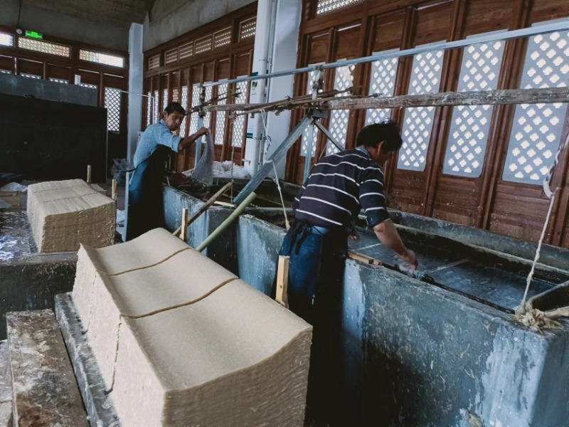 海菜花盛开的黑龙潭,被附近的白族民居建筑环绕,犹如一颗璀璨的明珠镶嵌其中,泛舟黑龙潭,触摸清凉的潭水让手指划过水花,看雪白的海菜花,随着水波摇曳着身姿,心情顿时舒畅;凝望水磨坊,听水车发出的哗哗声冲刷时光痕迹,耳畔清风拂过,宛如人在画中游,此时,所有的烦恼都被抛到脑后,享受着当下惬意的生活与水乡的气质。如果你不赶时间,还可以到鹤庆白族手工白棉纸传承体验中心,体验传统手工纸制作技艺,感受纸浆变纸张的神奇过程。