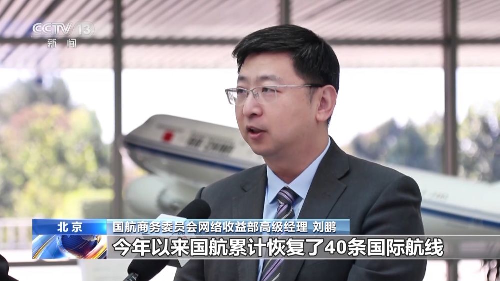 国航商务委员会网络收益部高级经理 刘鹏:今年以来,国航累计恢复了40条国际航线。我们将持续稳步地推进国际航线恢复,重点是从航线网络覆盖度和从航班频次上全方位地发力,针对出行旅客提供更多更优质的一些选择。