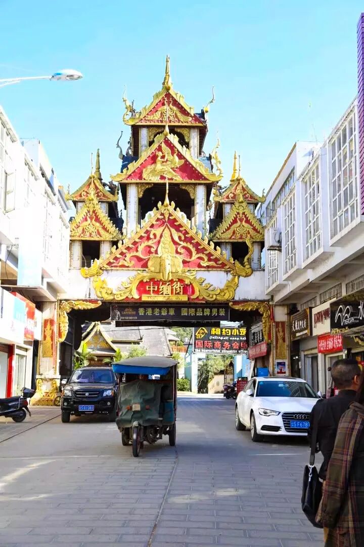 “中缅友谊街”,简称“中缅街”,位于国境线八十一号附一号、附二号、八十二号至八十三号界碑两侧,全长约一点五公里。在“中缅街”中间,耸立着一座恢宏壮观,金碧辉煌,颇具民族特色的“国门”。在我国境内一段称“中缅友谊街”,在缅甸境内一段,边民们称其为“白象街”。