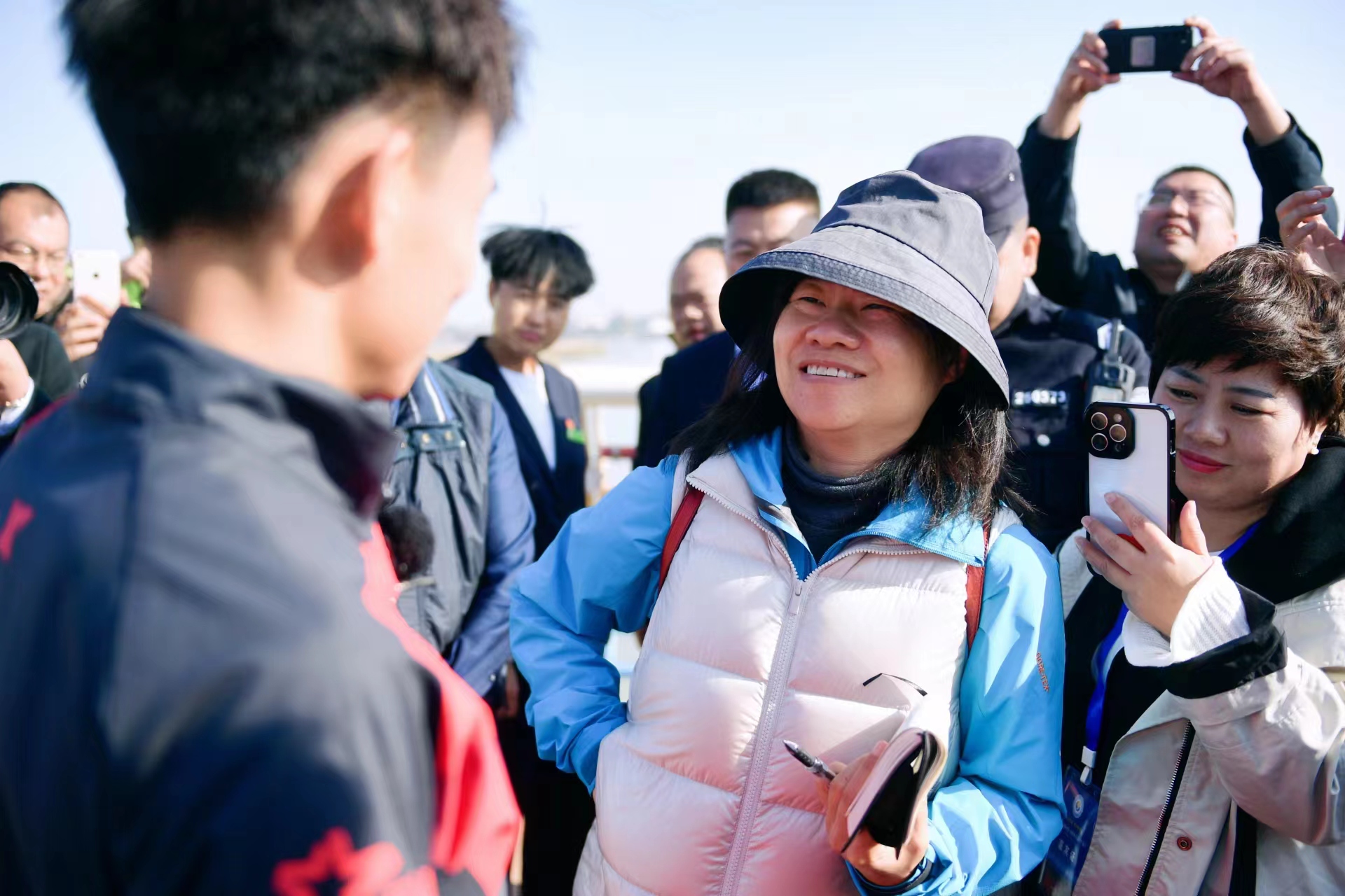 10月13日,“2023全国都市报+新媒体总编辑宁夏行”调研采访团来到沙湖景区采访,偶遇了在此参加领跑活动的杭州亚运会冠军宁夏籍运动员何杰。虽然是幸运地不期而遇,但是资深媒体人随机采访的专业程度更像是有备而来。