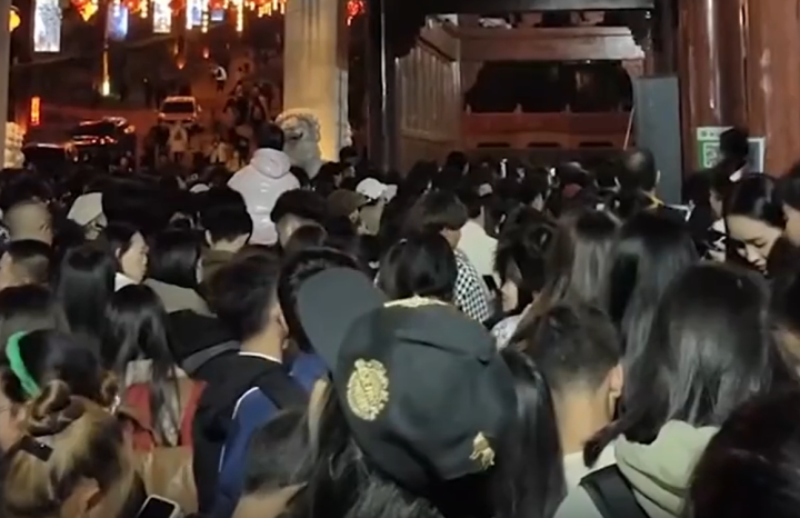 买了古武当山景区夜爬优惠票的林先生说,以上视频里看到的只是门口的景象,进门之后依旧是拥挤不堪,游客都挤在一起了根本难以往前走。