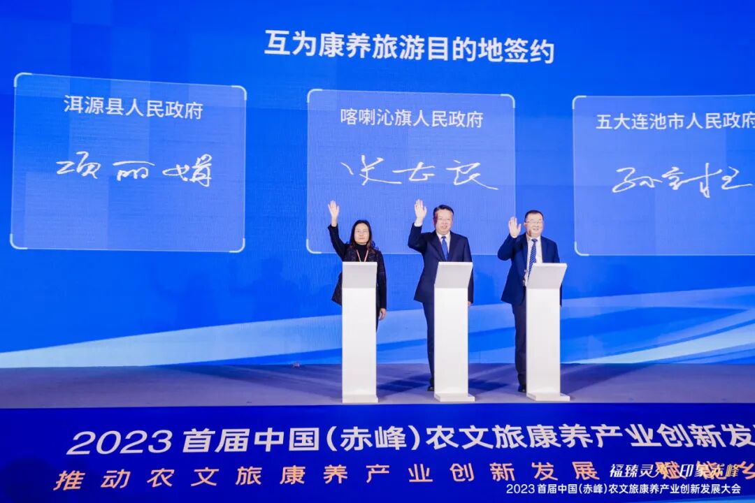 会上,洱源县和内蒙古自治区赤峰市喀喇沁旗、黑龙江省黑河市五大连池市签约达成战略合作关系,互为康养旅游目的地,优势互补共享农文旅康养产业资源,携手抱团齐心谋发展。