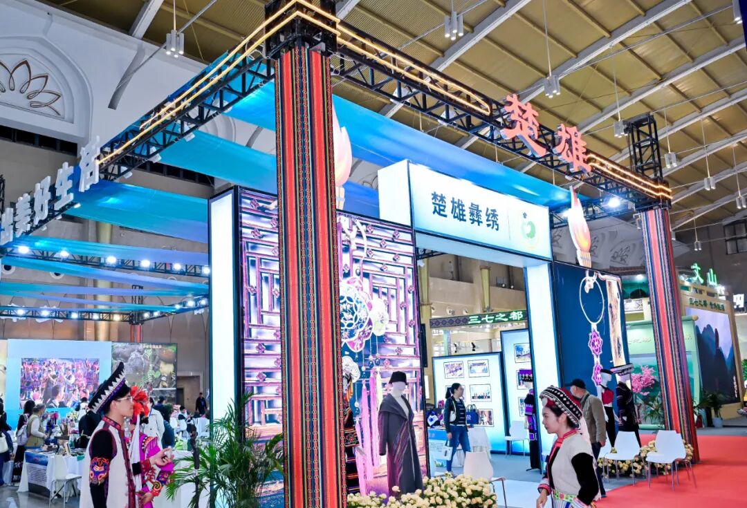 本届创意云南文化博览会以“七彩非遗·传承与创新”为主题,来自省内外商家展出产品近50万件。楚雄州展区由中共楚雄州委宣传部统筹,组织楚雄州文化发展集团公司等州级和10县(市)重点文化企业参展,充分体现了楚雄州“世界恐龙之乡”“东方人类故乡”“中国绿孔雀之乡”“世界野生菌王国”4张世界级名片,展示了楚雄州文化产业发展最新成果。展品以楚雄彝绣为主,共3000余件,从有着1700多年历史的国家级非物质文化遗产彝族服饰到“遇见楚雄”“绿羽仙踪”“福来云往”三大系列为主打的彝绣文创产品琳琅满目。