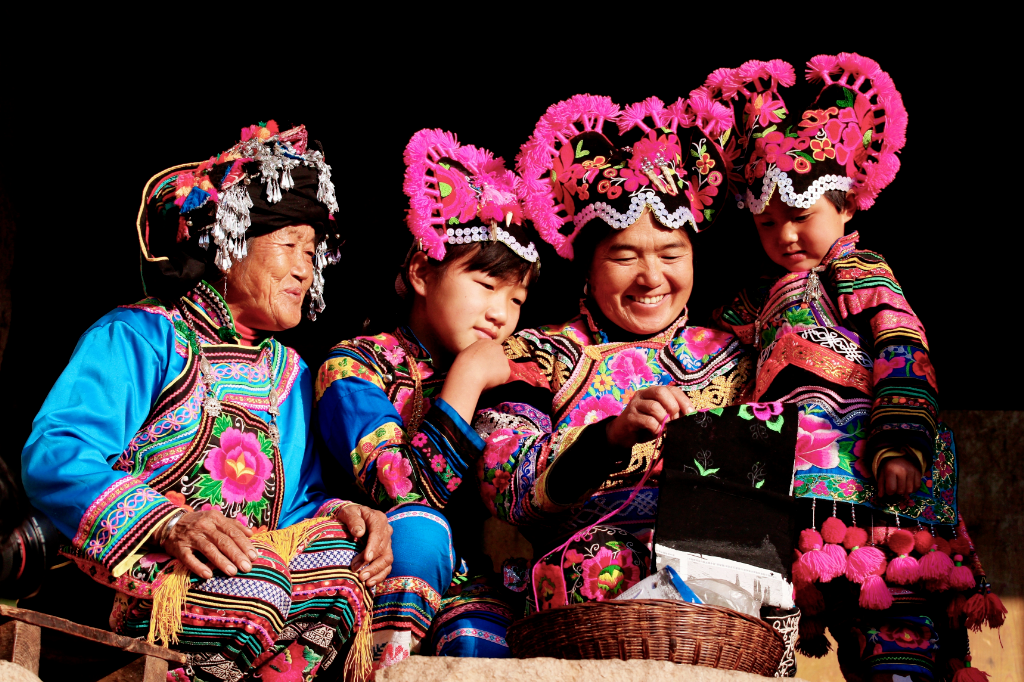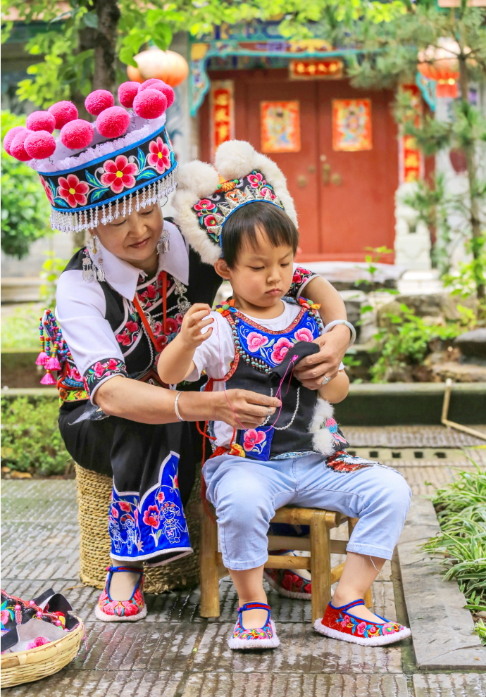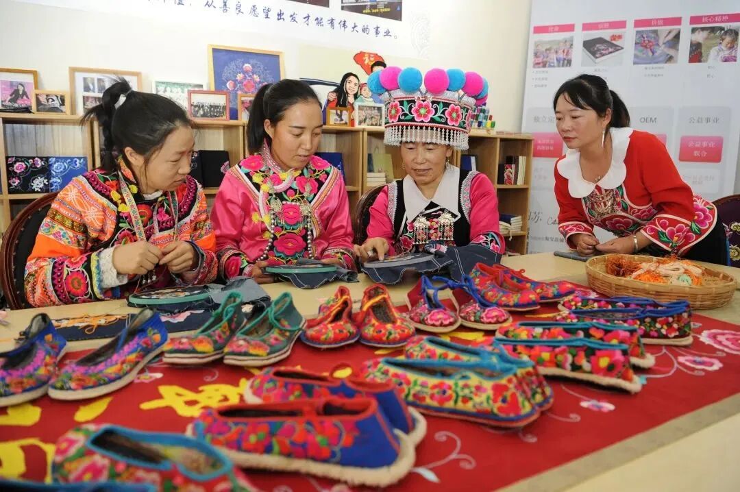 走出和美共生的蝶变之路坚持发展彝绣产业助推乡村振兴、保障绣娘权益。大力支持绣娘传承提升民族技艺水平,培养出返乡创业的全国人大代表金瑞瑞、省党代表丁兰英和传统文化的“守望者”国家级非遗传承人普玉珍等一批彝绣人才。成立全国首个彝绣现代产业学院,一体化推进彝绣非遗传承人的保护和复合型经营管理人才的培养。如今,彝绣正逐步走进千家万户,广大绣娘“带着娃、绣着花、养着家”绣出既美且富的指尖经济,2012年至2022年,绣娘人数从2.75万人增加到5.7万人,增长1倍;绣娘人均增收从563元增加到3180元,增长4.6倍,带动1200多名残疾人绣娘就近就业,古老的文化遗产正焕发出新的生机与活力,彝绣成为把更多妈妈留在家的温暖产业和促进农民增收的富民产业,穿在身上的艺术绣品变成了可以卖钱的经济商品。