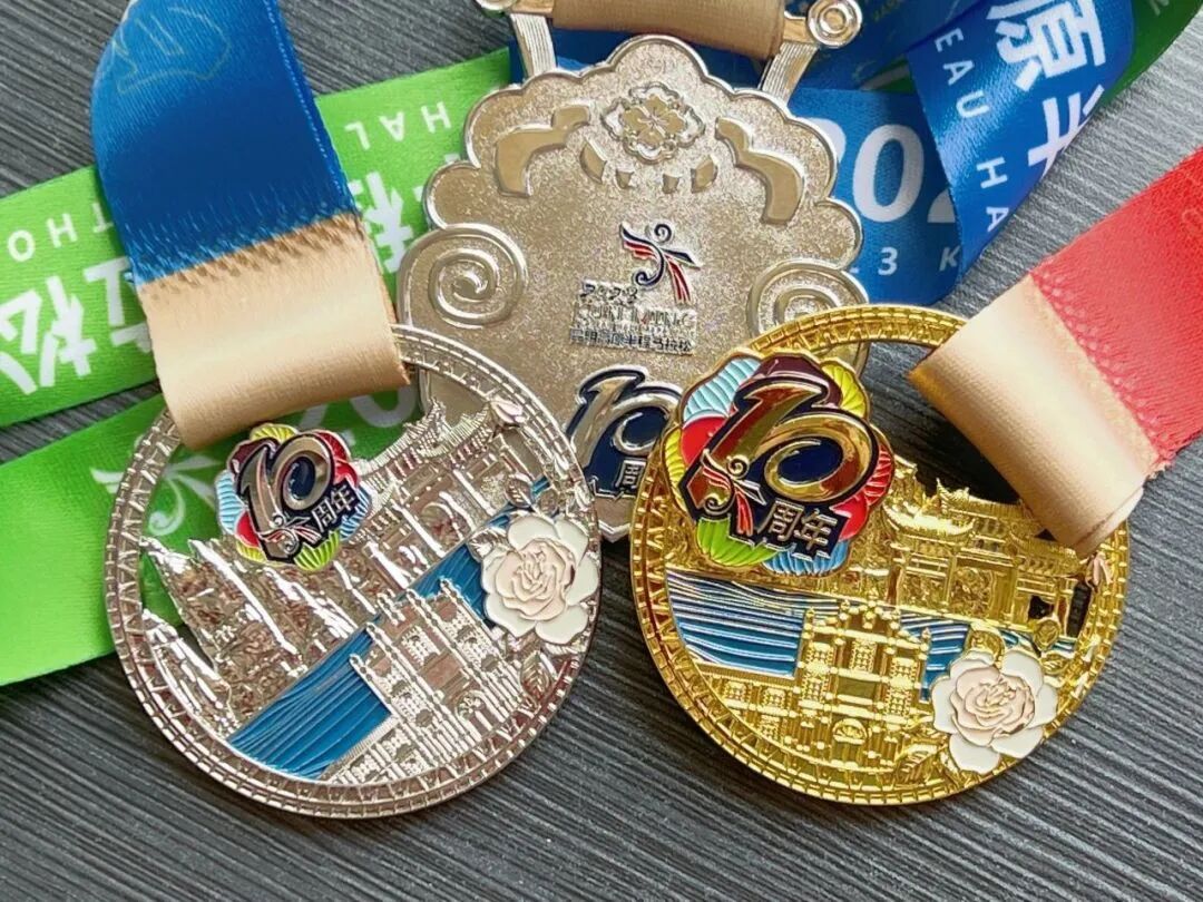 本次昆马的奖牌设计颇有新意,奖牌上汇集了金马碧鸡坊、陆军讲武堂、石林、滇池、山茶花等昆明代表性元素,用最具昆明特色的设计,为昆马十年留念。赛道沿途,呈贡区精心组织了欢乐锅庄舞、花灯等非遗文艺表演以及大学生啦啦操表演,展现了昆明人的热情好客,为跑者们加油助威的同时,让更多人得以沉浸式感受昆明的特色文化。