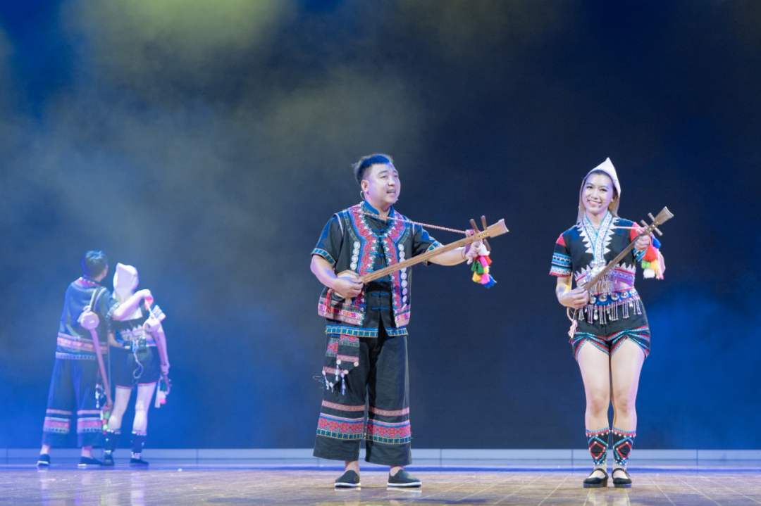《月下弦歌》以乐器哈尼小三弦伴奏弹唱,以简洁明快的曲风结合直白通俗的哈尼语进行演绎,展现畅快鲜活、真切动人的艺术感染力。