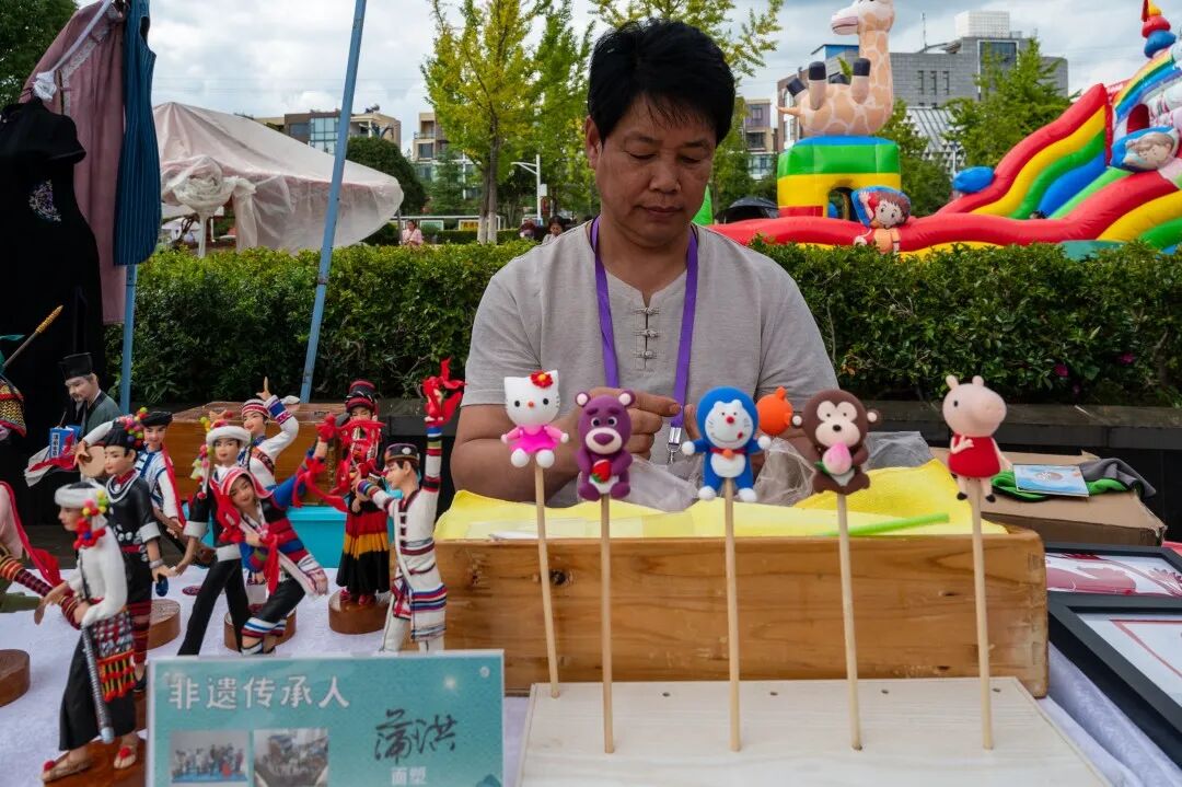 现在的昆明街边,也经常能见到捏面艺人,他们根据所需随手取材,在手中几经捏、搓、揉、掀,用小竹刀灵巧地点、切、刻、划,塑成身、手、头面,披上发饰和衣裳,顷刻之间,五颜六色的面团就变成了栩栩如生的艺术形象,有小朋友们喜欢的卡通形象,也有古代神话中的仙女,还有云南的少数民族小人,形式多样,惟妙惟肖,展现出滇派面塑的独特风格。走街串巷间,令人崇敬的工匠精神,也在谈笑声与惊叹声中不经意间传承着。