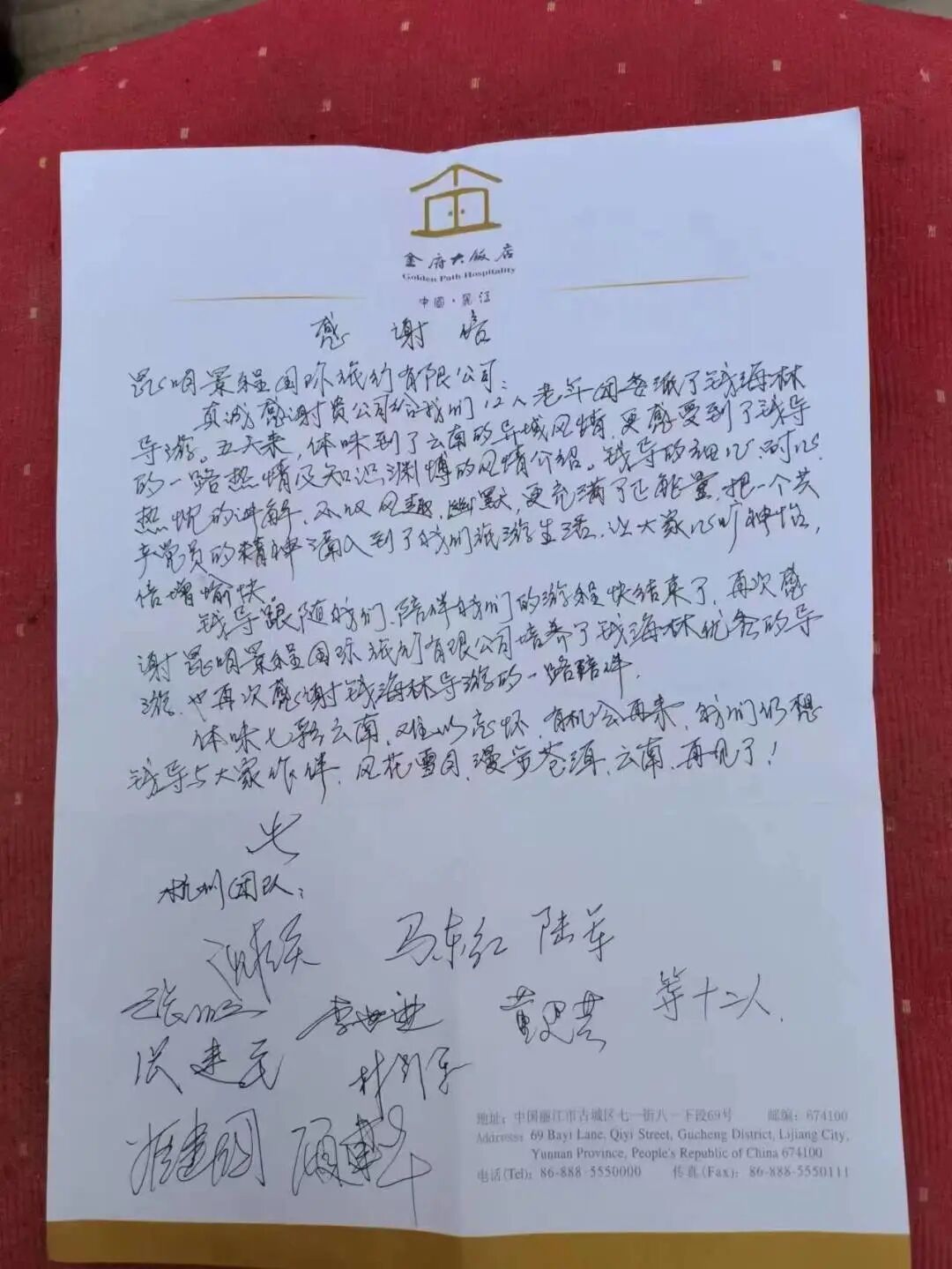导游钱海林收到的感谢信