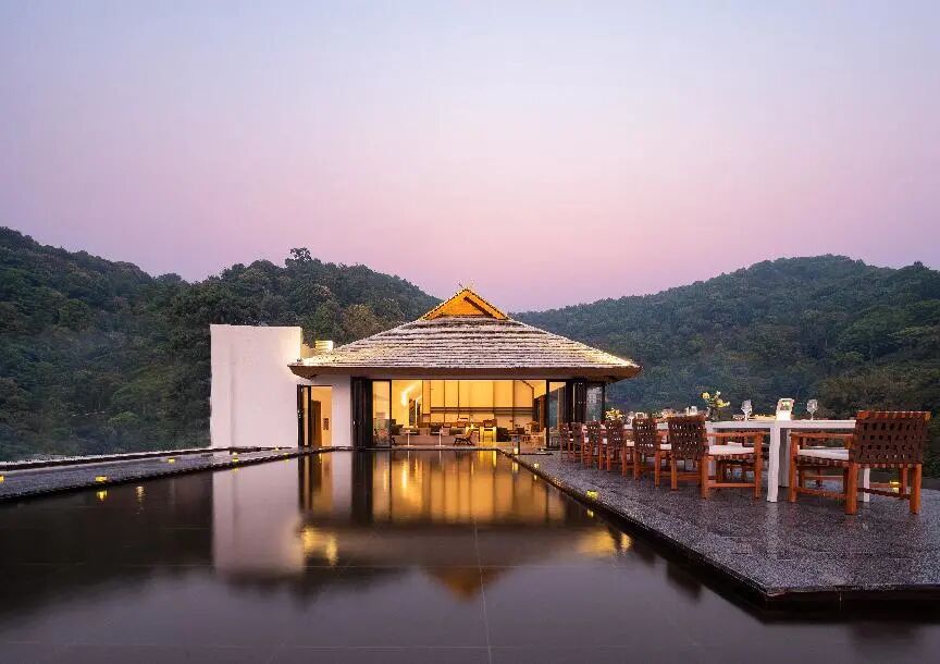 酒店位于勐海县南糯山村寨里,酒店将哈尼族生活、农业、植被等在地文化元素巧妙地融入到酒店的外观和内饰之中,“匠庐”欢喜的度假氛围也让人眼前一亮。