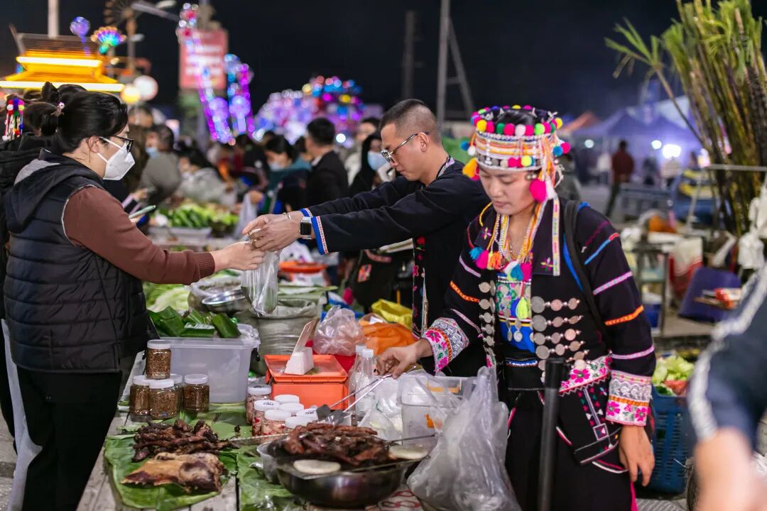 在勐满镇曼粉代村举办“米线街”系列活动,包括传统歌舞表演、农产品展销等。