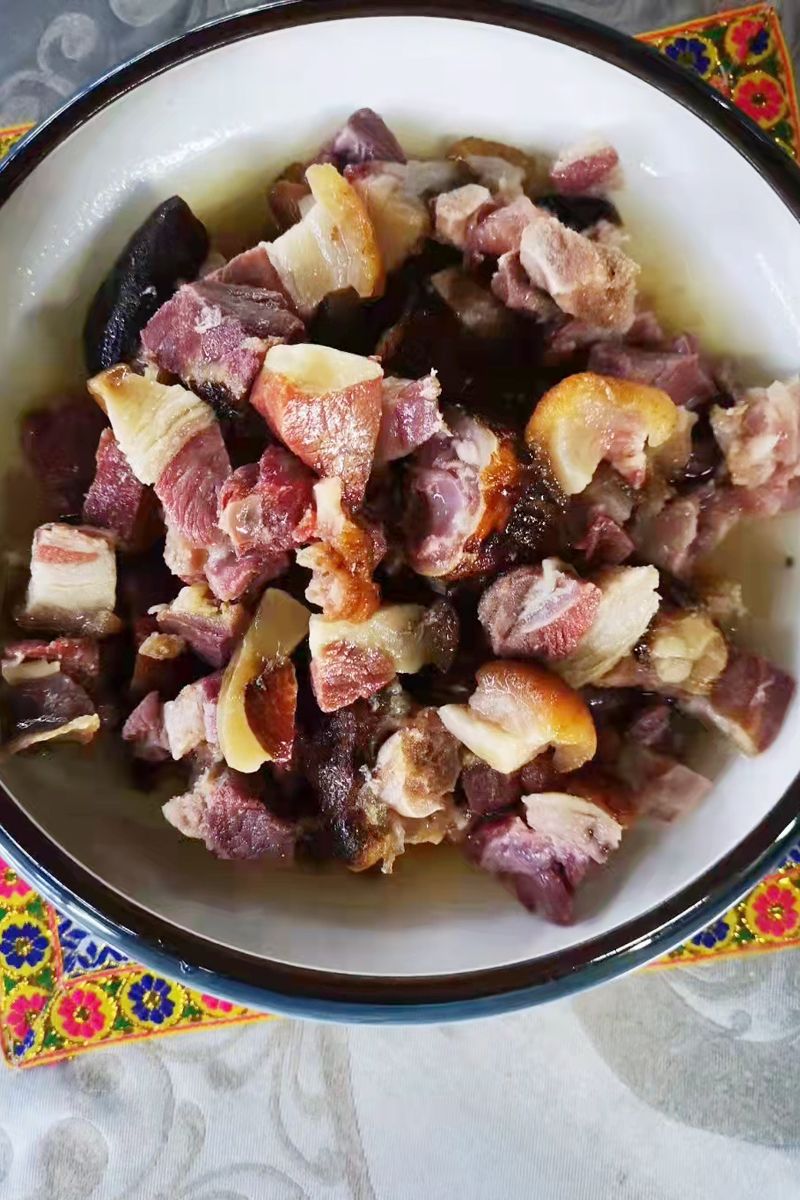 老猪脚,是腌腊界的巅峰,毕竟每一条优秀的美腿背后,都是一只特立独行的猪。它是古老的咸鲜之本,肉与时间的交响曲。从古至今,屏边人家灶台附近的墙壁上,总得挂着几块老猪脚。冬日漫长,没点经久不衰的油脂荤香,谁顶得住舌尖的困顿与虚无?