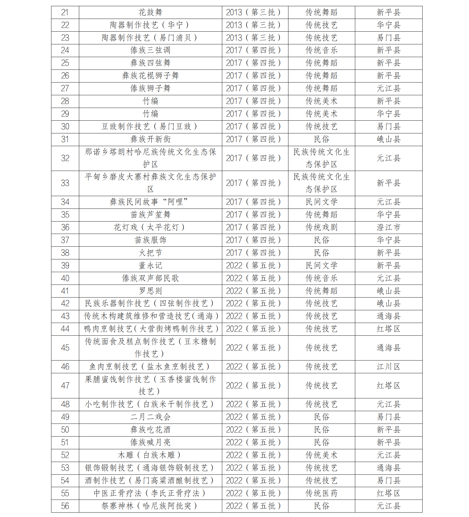 附件1:玉溪市市级及以上非物质文化遗产代表性项目名录