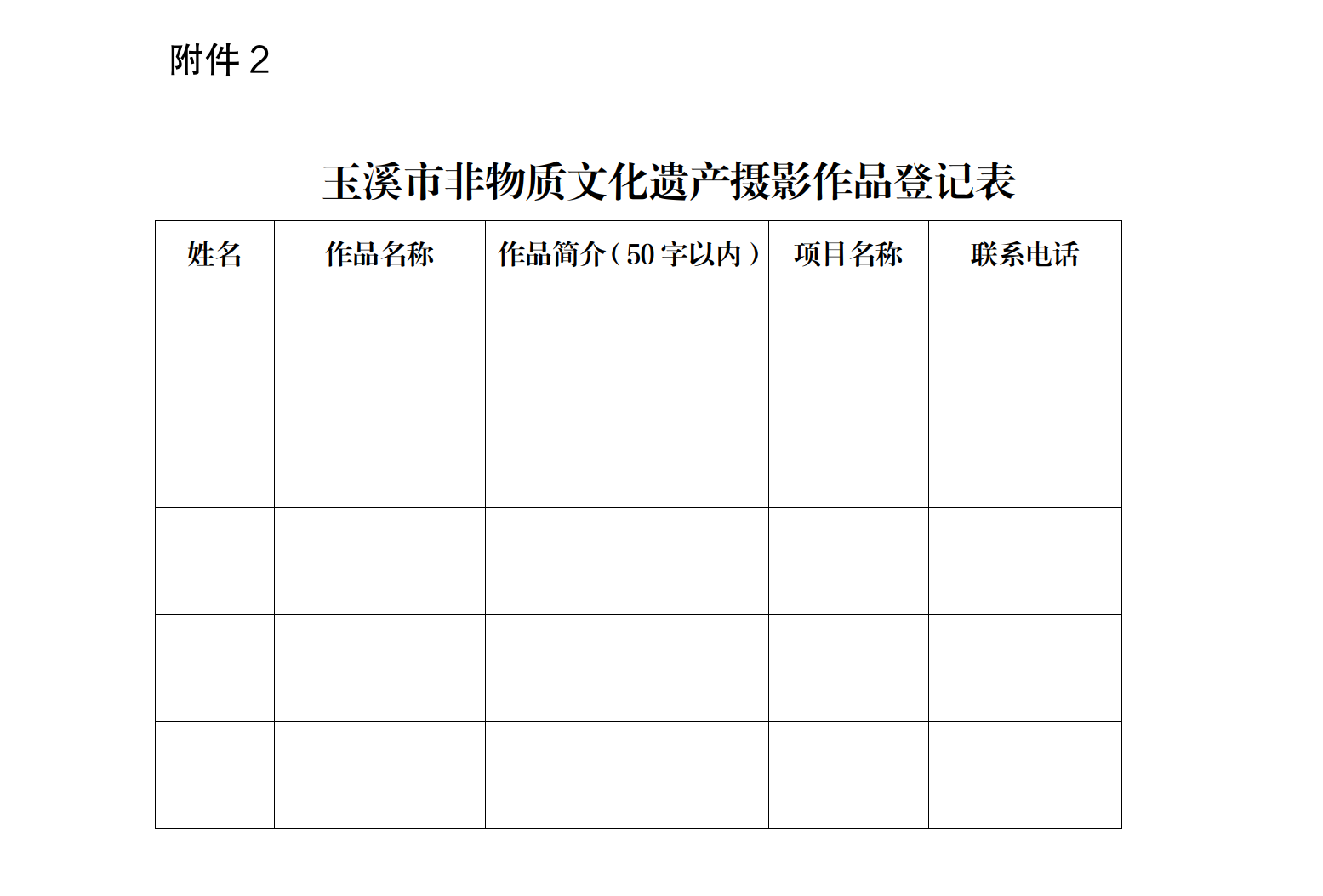 附件2:玉溪市非物质文化遗产摄影作品登记表