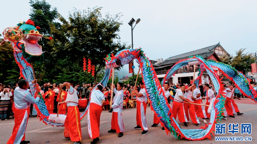 近日,云南省普洱市宁洱哈尼族彝族自治县磨黑镇举行了一场以“烧烤”为主题的文化旅游节,现场热闹非凡。长号、唢呐、锣鼓和鞭炮齐鸣,当地群众舞龙欢迎八方宾客。(来源:新华网)