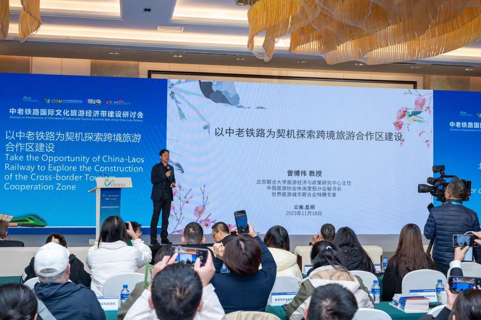 11月18日,中老铁路国际文化旅游经济带建设研讨会在昆明举行。本次研讨会以“旅游助力中老铁路建设发展路·幸福路·友谊路”为主题,由2023中国国际旅游交易会组委会主办,文化和旅游部国际交流与合作局、云南省文化和旅游厅、中国铁路昆明局共同承办。会议汇聚国内外二百多名相关领域专家学者、旅游城市代表、旅行服务商以及二十多家国内外媒体代表参加,共同探讨中老铁路文化旅游发展,推动以“铁路+旅游”促进中老铁路国际文化旅游经济带建设。