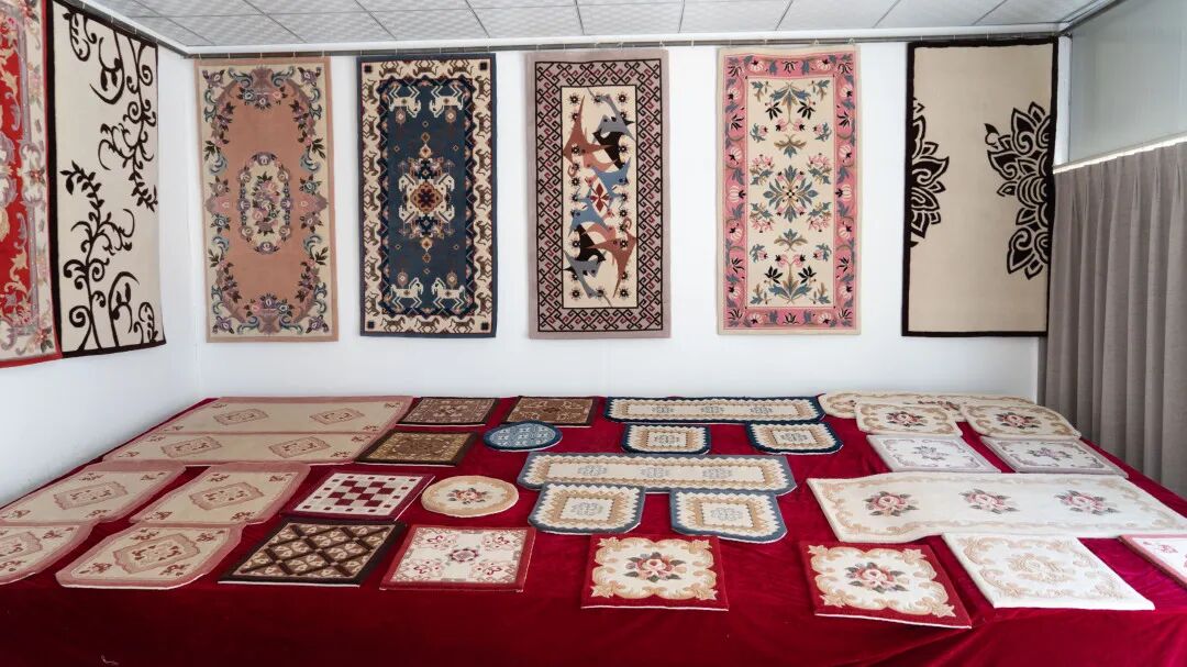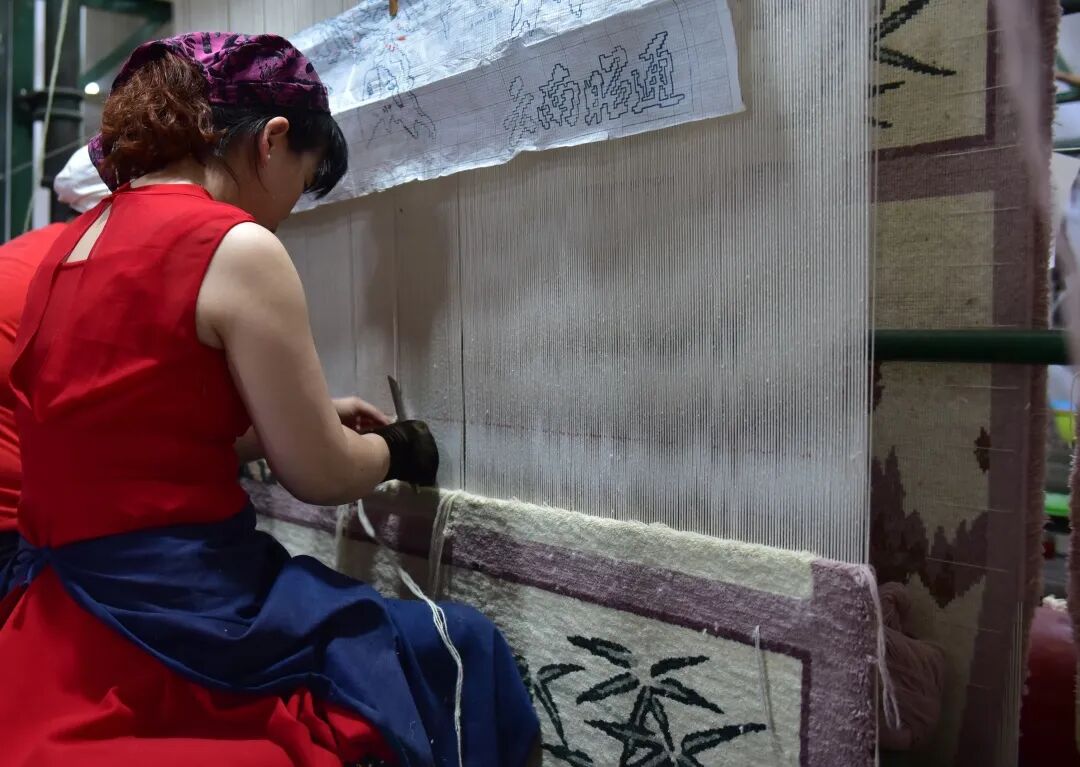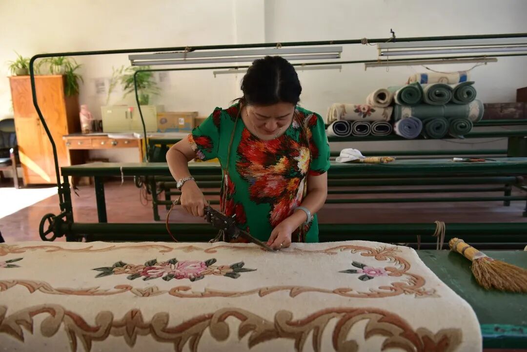 地毯种类包括客厅毯、床前毯、挂毯、车垫、沙发垫等100余个产品。手工织造的地毯色彩千变万化、图案丰富多样,有大象、孔雀等珍禽异兽,也有牡丹、山茶等奇花异卉,花卉、景物犹如浮雕,这个地面上的艺术品深受商家和消费者喜爱。