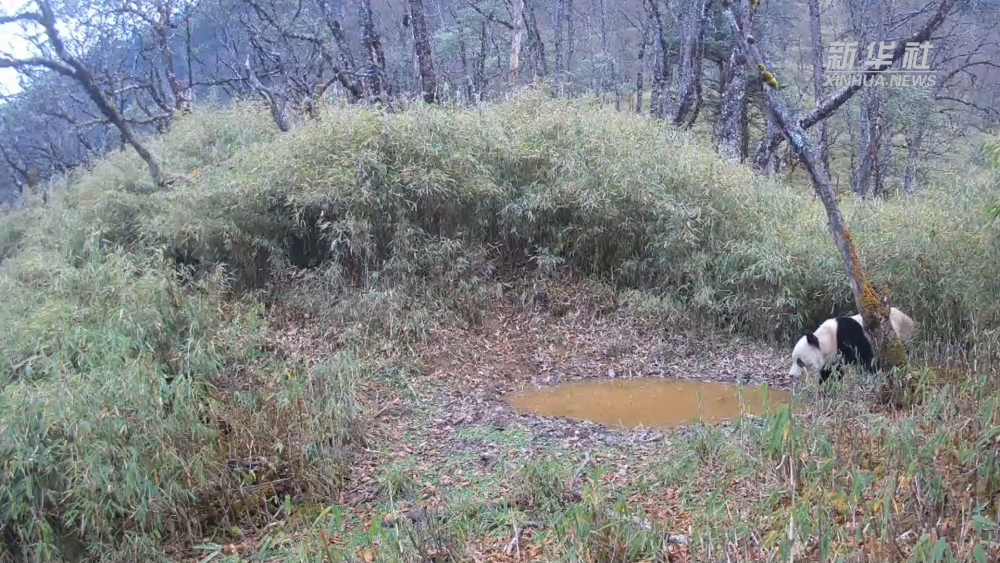 ※大熊猫国家公园崇州片区11月连续拍到野生大熊猫饮水画面