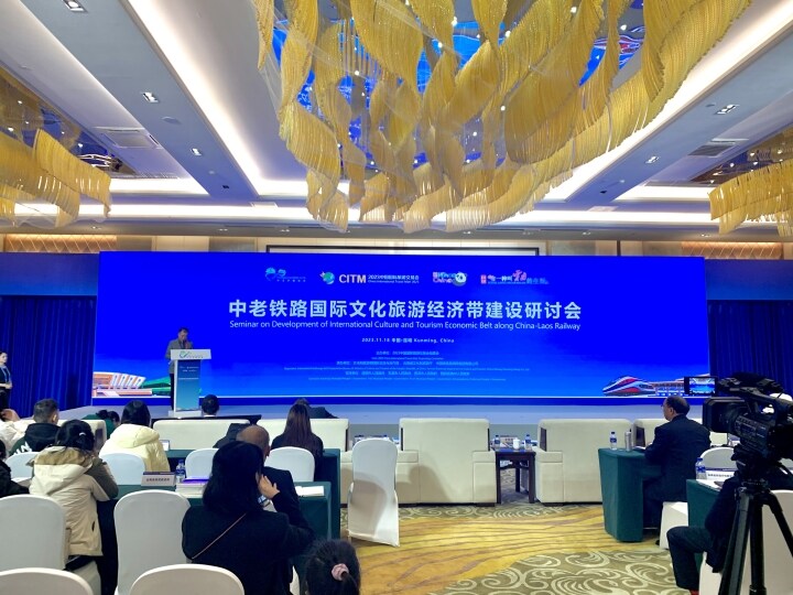 11月18日,中老铁路国际文化旅游经济带建设研讨会在云南昆明举办。研讨会以“旅游助力中老铁路建设发展路·幸福路·友谊路”为主题,共同探讨中老铁路文化旅游发展,推动以“铁路+旅游”促进中老铁路国际文化旅游经济带建设。文化和旅游部国际交流与合作局、中国铁路昆明局、云南省人民政府有关领导和老挝政府官员出席会议并致辞。(来源:中国旅游新闻客户端)