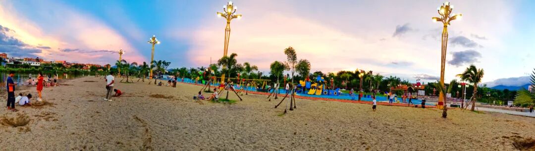 依托景区周边资源和乡村优势,带动了景区周边民族特色餐饮、住宿、小吃等业态产品开发,公园主干道(鑫源路)已打造为“勐相酒吧主题街”,景区内发展起了1家民宿, 10 多家民族特色饭店(餐饮店)和特色小吃摊(点),有小火车、人工海滩等儿童娱乐设施,有健身步道、骑行道、水上栈道等观景、健身设施和对外开放了足球馆,让游客可以尽情享受“黄金花海,绿韵宝石,甜美耿马”带来美好惬意生活。