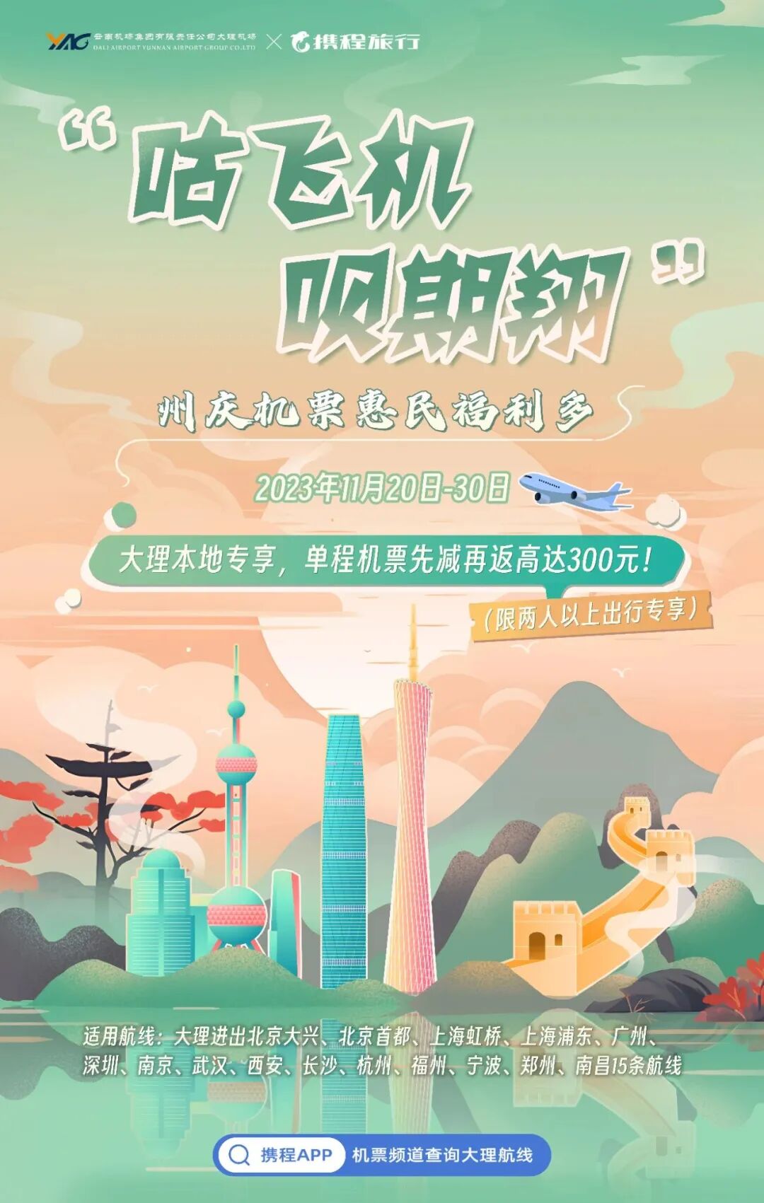 大理机场“咕飞机,呗期翔”大理州州庆惠民补贴活动
