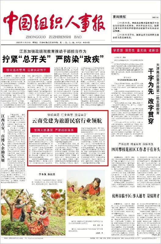 今年以来,云南文旅市场强势复苏、民宿行业迅猛发展。为有力推动民宿产业与旅游发展融合共促,以党建引领旅游民宿行业高质量发展,云南省委组织部选取西双版纳州、大理州、丽江市3个旅游文化资源禀赋高、基础好、条件优、环境美的地区,开展旅游民宿行业党建试点工作,探索沿着产业链条开展组织共建、行业共管、资源共享,助力旅游民宿行业规范健康发展。