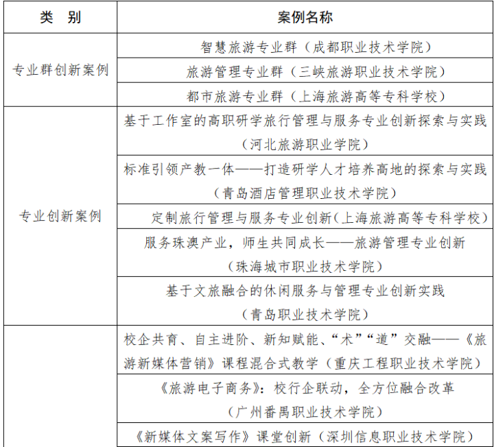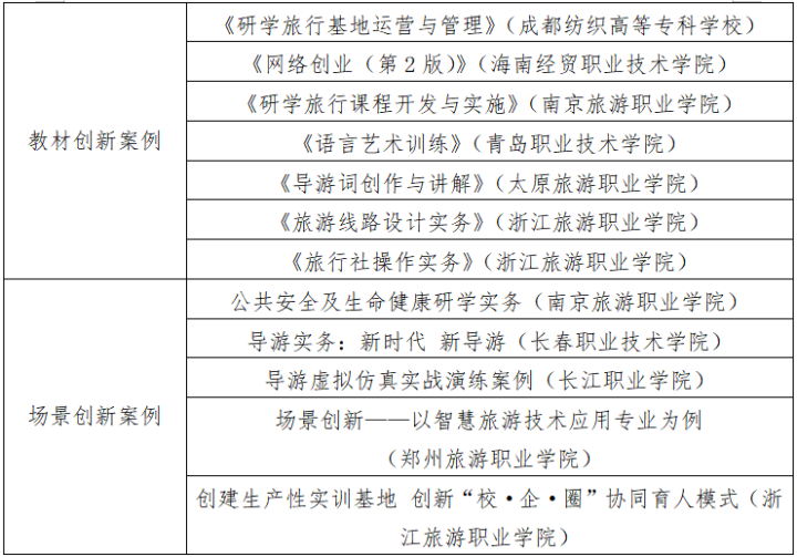 全国旅游职业教育教学指导委员会关于全国旅游职业教育“五新”大讲堂入选案例遴选结果