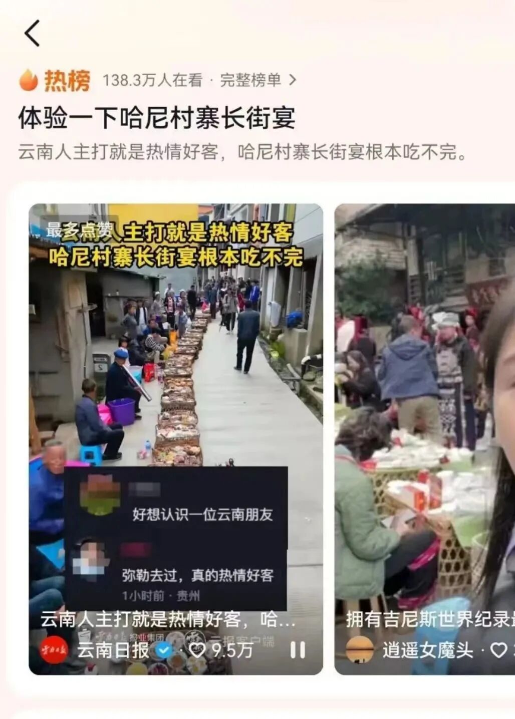 2023年云南红河绿春哈尼十月年长街古宴文化旅游节刚刚落下帷幕,网络上关于“绿春长街宴”的热度却一直居高不下,全网阅读量破1亿,此次长街宴出圈,是丰富多彩的活动体验与网络媒体共同助推的结果。