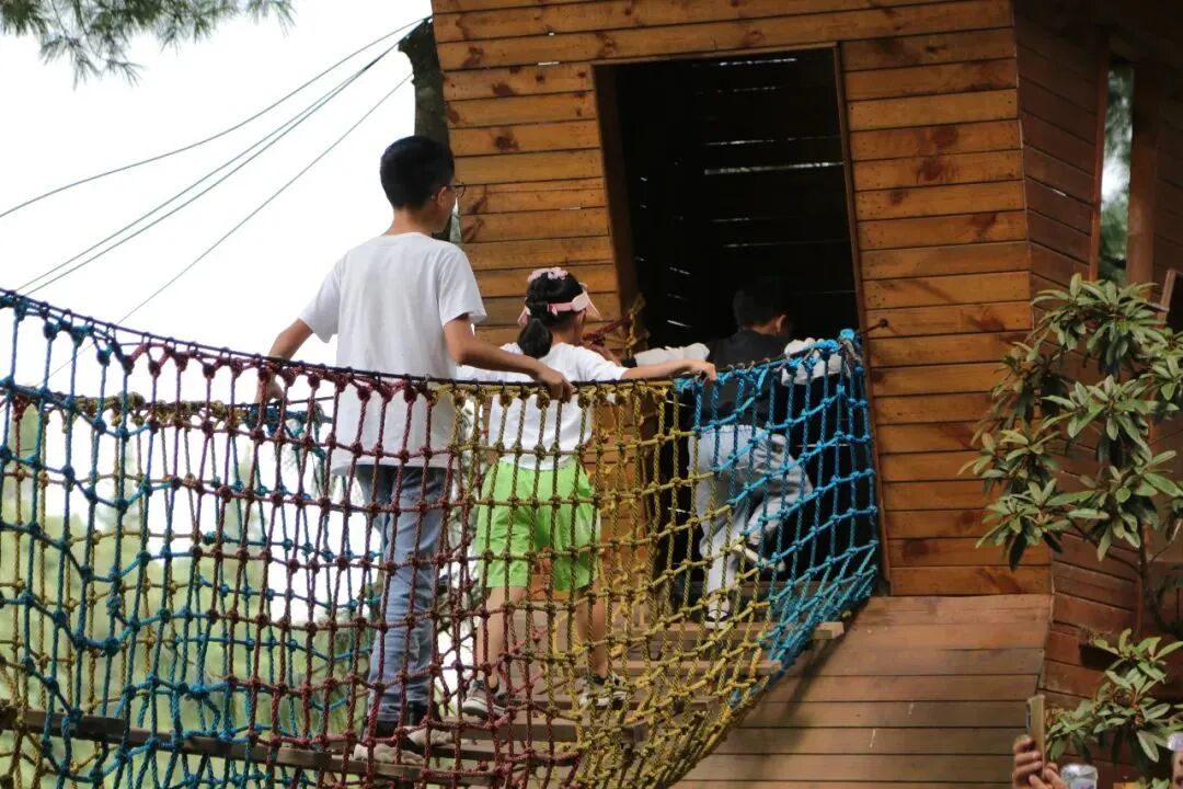 这里不仅是成年人的乐园,也是孩子们认识自然挥洒童真的乐土。儿童游乐园位于龙马山天然的森林大氧吧内,轮胎做的秋千、渔网做的吊床、纯木结构的小城堡、小吊桥……都是小朋友们向往的探险乐园。