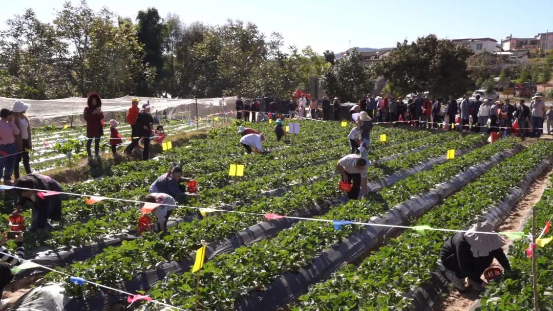 11月25日,楚雄州永仁县宜就镇50亩绿色高效优质草莓示范园迎来了开园竞拍活动,吸引了众多游客前来采摘游玩,尽享“莓”好时光。