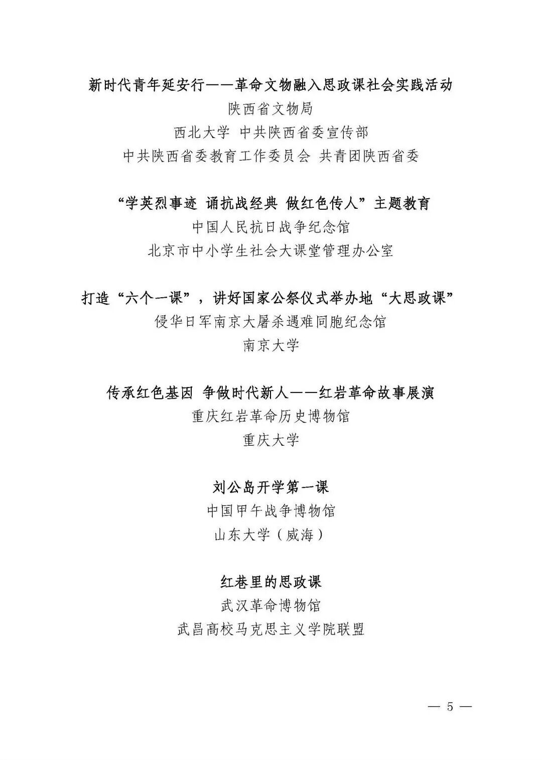 1.以革命文物为主题的“大思政课”优质资源示范项目名单(10项)