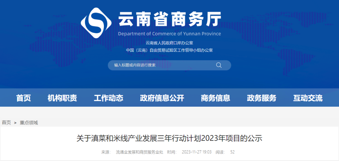 根据《云南省商务厅关于滇菜和米线产业发展三年行动计划2023年项目申报的通知》相关要求,经组织申报、州市商务局推荐,省商务厅审核,初步形成2023年拟支持滇菜和米线产业发展三年行动计划项目名单,现予公示(详见附件)。公示期为2023年11月27日至12月3日,公示期间如有异议,请以实名、书面形式向省商务厅反映。