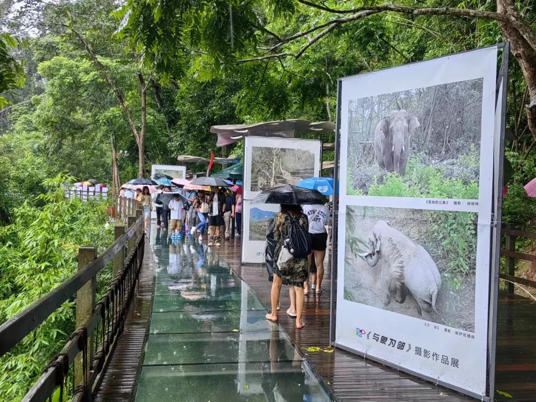 “与象为邻”摄影展共展出国内外35位摄影师拍摄的与亚洲象相关的摄影作品200幅。展览地点设置在野象谷景区观光栈道上,游客可以在浏览景区的过程中近距离观赏萌象们的有趣瞬间。