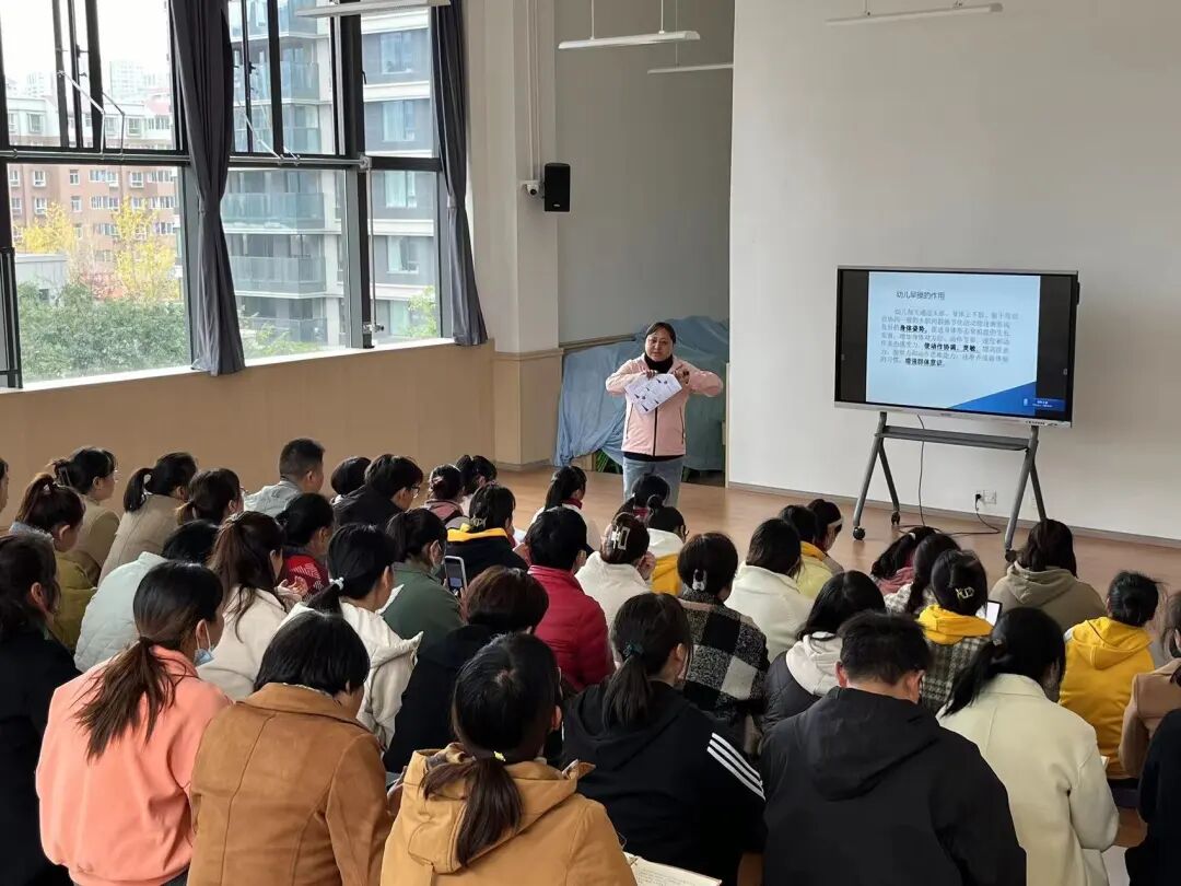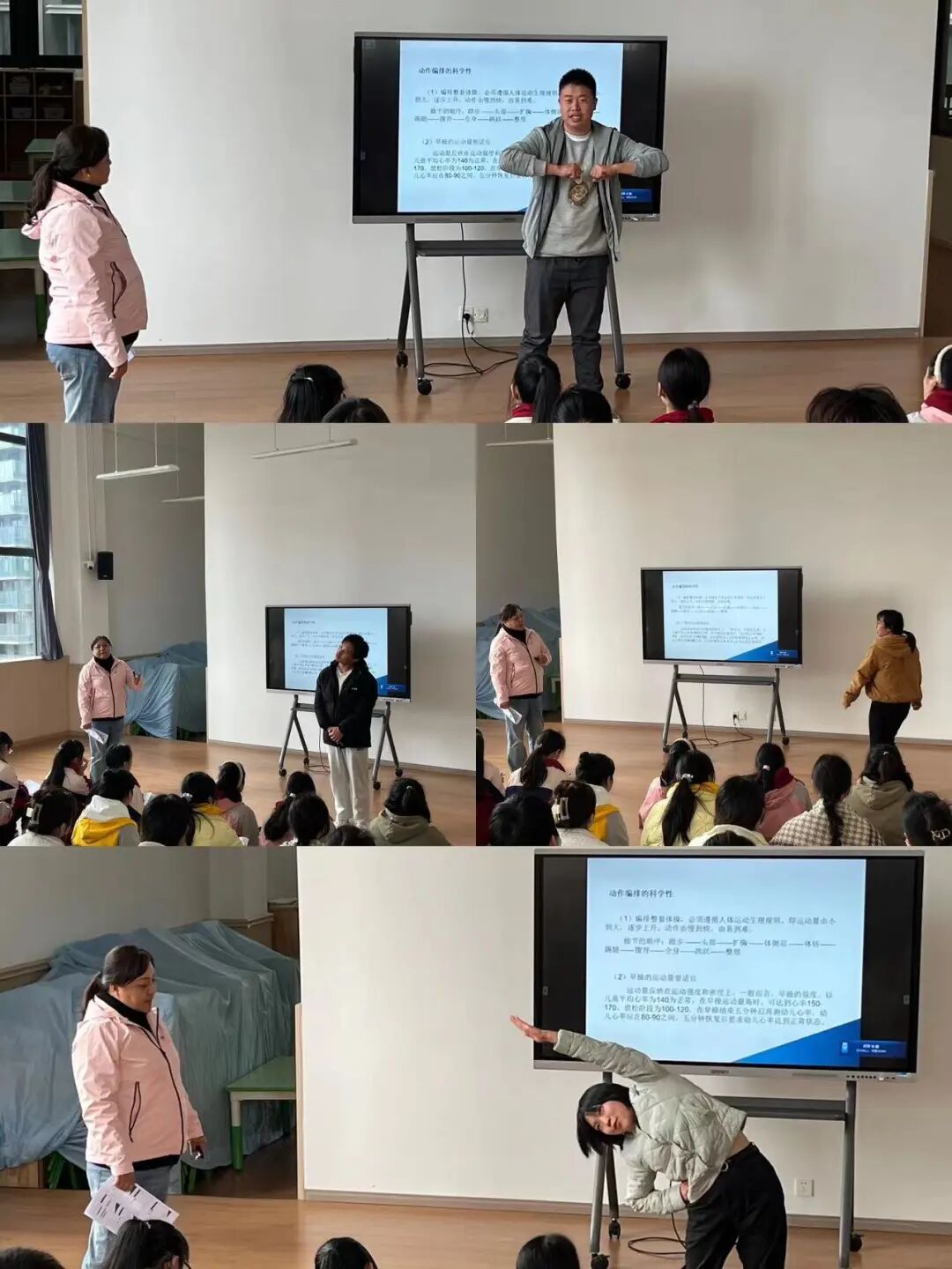 早操是幼儿园户外体育活动的重要内容,它对培养幼儿良好的身体姿势、促进幼儿动作协调灵敏以及增强幼儿群体意识有着不可忽视的作用。为了提高教师早操编排的能力,2023年11月30日,西山区前卫幼儿园开展了“幼儿园体育活动的有效组织——早操编排”培训活动。
