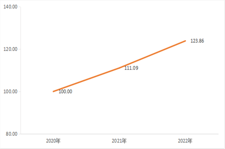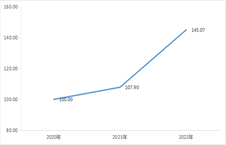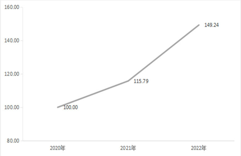 2022年,楚雄彝绣品牌化指数运行点为145.07点,同比增速34.45%,远超过去两年平均增速,品牌张力正在呈现加速提升态势;产业规模化指数达到123.86点,彝绣产业正逐步由传统手工作坊向现代规模化经营转变;市场化指数达149.24点,同比增速28.89%,彝绣产业市场化进程进一步加速;产业专业化指数运行点为149.21点,同比增速32.25%,彝绣产业正由传统综合经营模式加速向专业化分工模式转变,其专业化能力将进一步提升。