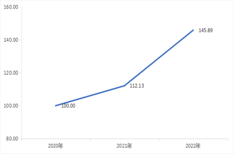 2022年楚雄彝绣产业发展总指数运行点为145.89点。其中,2022年同比增速30.11%,超出基期以来复合增速10个百分点。作为国家级非物质文化遗产,从民族文化到文化产业,楚雄彝绣走出加速度。