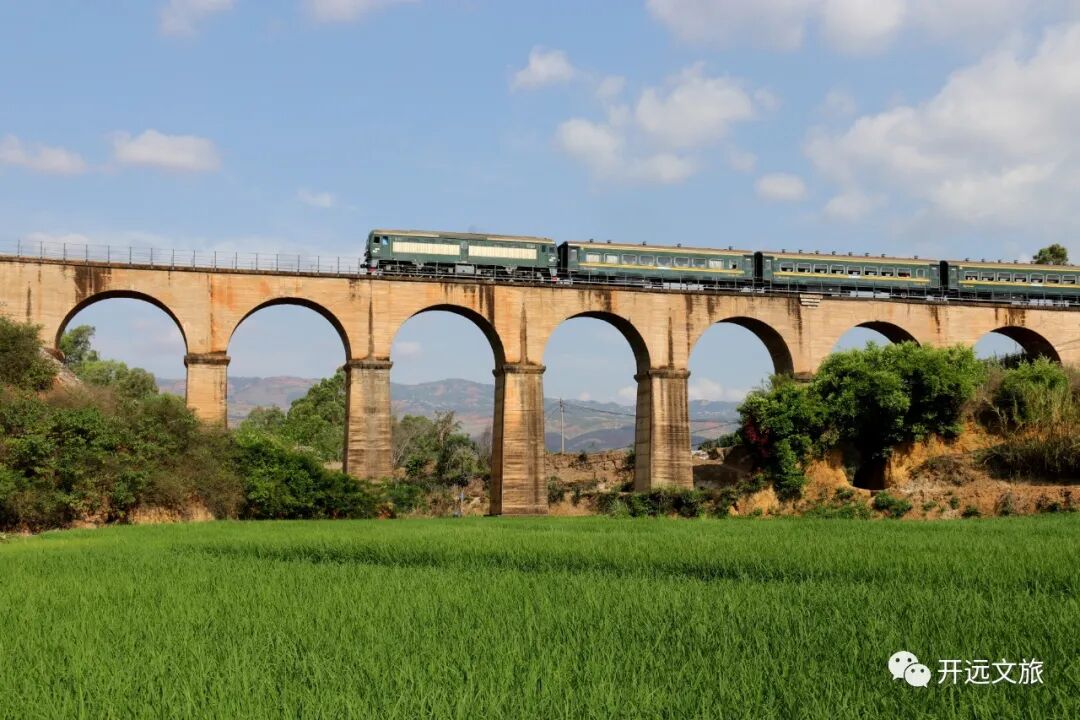从前车、马、邮件都慢,乘坐在开行百年的滇越铁路米轨火车上,让你拾起那些被遗忘的时光。它承载着太多人的回忆,看着滇越铁路延展在眼前,穿过巍峨雄壮的大花桥,融合中西方建桥艺术特色的玉林山七孔桥和环境清幽,风光旖旎的村庄,感受时光的交错和风景的曼妙。