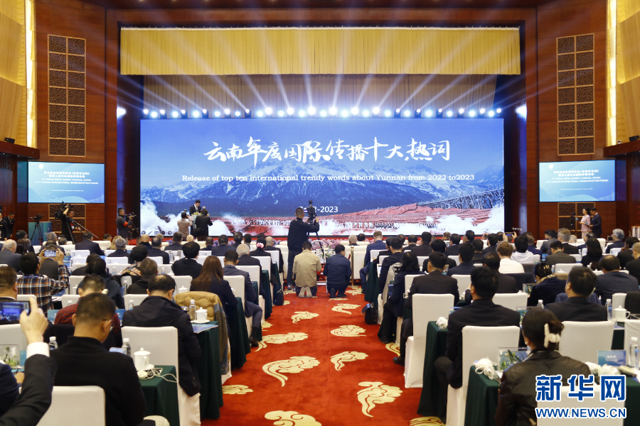 第五届世界媒体峰会(云南分会场)暨第二届大象国际传播论坛上,新华网正式公布“云南2022—2023年度国际传播热词”(12月5日摄)。新华网 李浩 摄