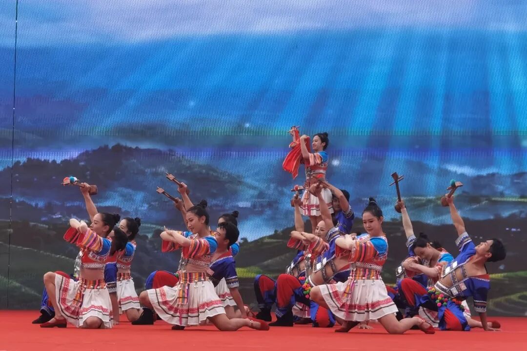 开场的歌舞节目《太阳转身的地方》和《我家临沧》,热情地展示了临沧人民热情好客的豪爽性格。接着,具有少数民族特色的《紧那罗和金马鹿》《拉祜姑娘》《菩仿》《凤舞佤山》《赛仰》《桑沼哩》等歌舞节目相继登场,为现场观众带来了一场视觉与听觉的文化盛宴。除了民族歌舞表演,表演团队还为观众准备了《啊唛唛临沧茶》《和谐边疆》等具有临沧茶文化元素的表演,赢得了现场观众的阵阵掌声。这些节目充分展现了临沧市丰富的文化底蕴和独特的艺术魅力。