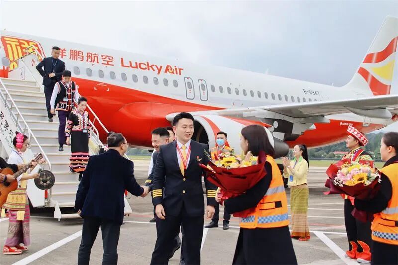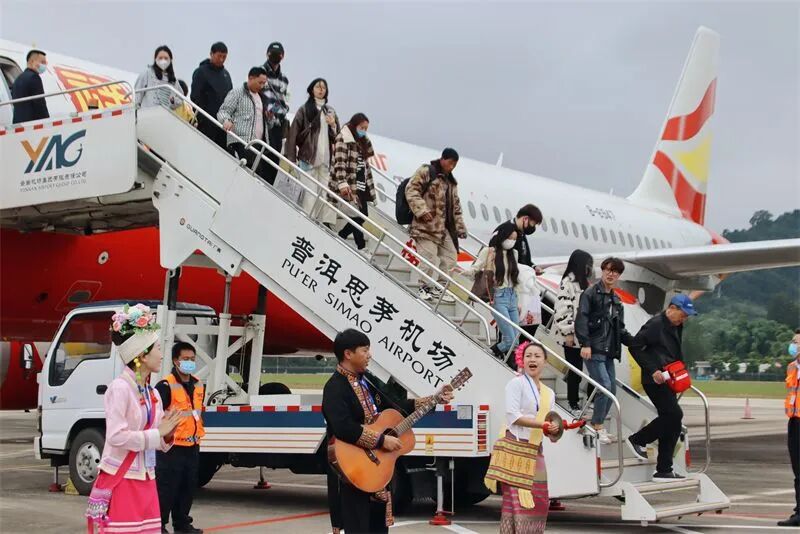 为迎接此次航班,普洱思茅机场开展了“过水门”仪式,并为机组人员送上鲜花表示问候。同时,普洱市文化和旅游局组织市民族歌舞团,为首航旅客举行了极具民族特色的欢迎仪式,《普洱欢迎你》《吖吧吖咪》《月亮里的啊妹》等歌曲接连响起,欢快的调子萦绕在广大乘客与机组人员的耳畔。