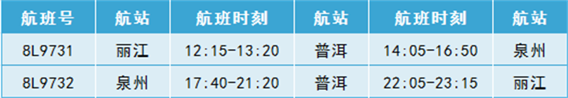 (丽江⇌普洱⇌泉州航线航空时刻表)