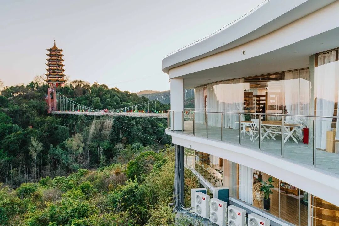 提到髯翁森林公园,不得不向大家种草一个“书吧”。“书吧”位于髯翁森林公园热门景点“玻璃水幕天桥”出口处,想要抵达书吧,只有两种方式:一是从网红玻璃天桥通过,检验你的胆量;二是从公园入口右侧游客步道前往,检验你的体力。