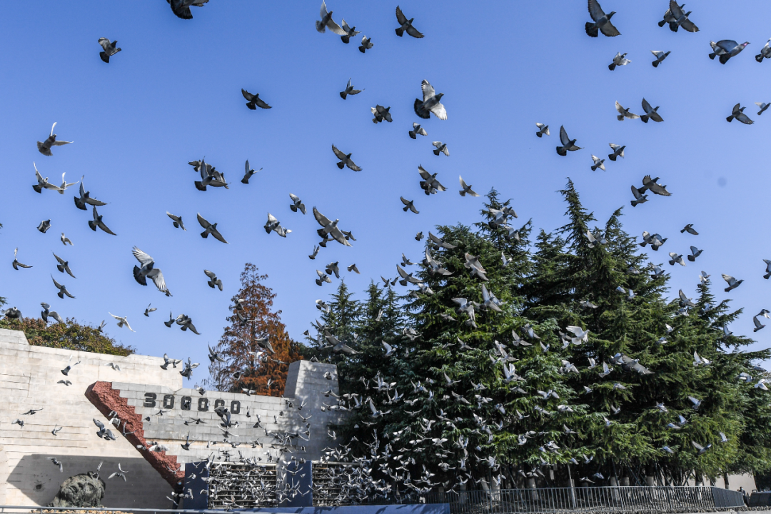 (2022年12月13日,南京大屠杀死难者国家公祭仪式现场放飞和平鸽。新华社记者 李博 摄)