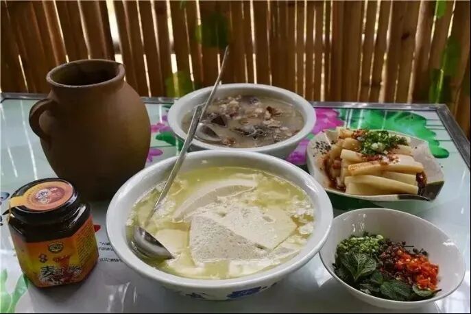 一方水土养一方人,也造就了一方美食的独特味道。在外普拉村,能体验到“宜就五绝”,宜就石磨凉粉、他克酒、龙泉豆花、羊汤锅、手工麦芽糖,可口的美食绝对会让你流连忘返。