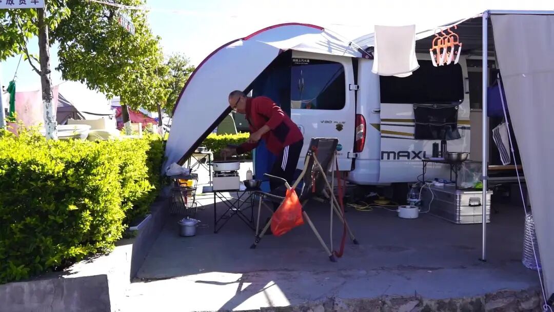 上午11点,永仁县城早已洒满阳光,位于城郊的自驾游房车露营地已经“爆满”,120多辆来自四川、上海、山东等地的房车和越野车有序停放。来自四川绵阳的朱东鸣正在忙活着今天的午饭,他的妻子王敏正悠闲地享受着“阳光城”的冬日暖阳。