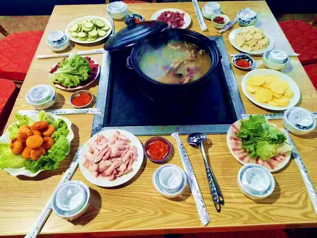 丽江火塘火锅主要有黑山羊火锅、腊排骨火锅、土鸡火锅、牦牛肉火锅……每一样都极具丽江特色。火塘火锅非常注重原汁原味,一般用炭火慢慢地炖。等把肉吃得差不多了,再加入当地原生态蔬菜进去沸煮片刻,香气弥散开来,也就成了令人叫绝的美味。